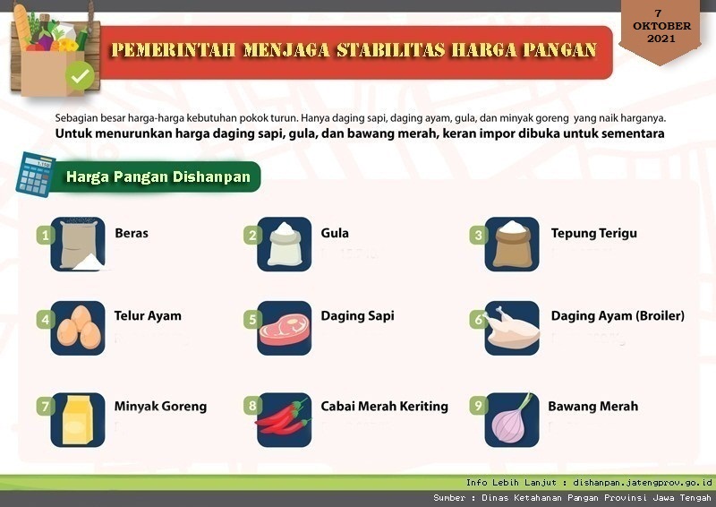 Harga Pangan Strategis Minggu I – Kamis, 7 Oktober 2021 Berikut Data dari bidang Distribusi dan Cadangan Pangan Dinas Ketahanan Pangan Provinsi Jawa Tengah berupa Daftar Harga Pangan Strategis Bulan Oktober 2021. Download